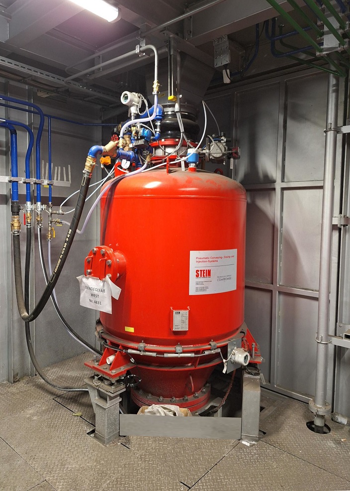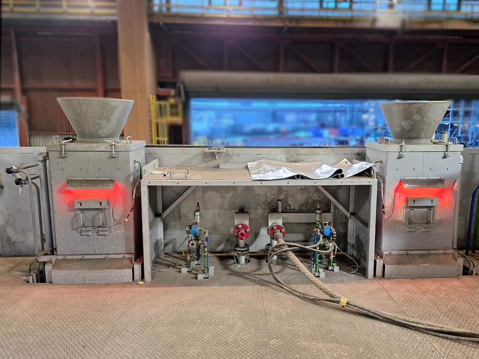 Die neuen Anlagen wurden in einen verfahrbaren Servicewagen integriert und dienen zum Auftrag von pulverförmigem Feuerfestmaterial auf die RH-Schnorchel und das Obergefäß.